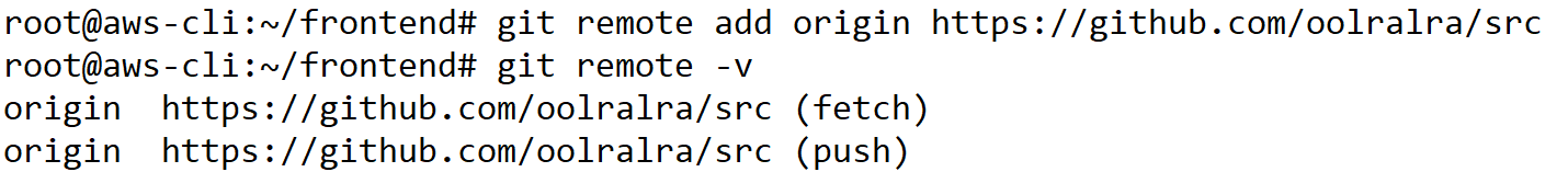 root@aws-cli:~/frontend# git remote add origin https://github.com/<계정>/src