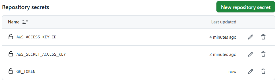 - aws 액세스 키를 안전하게 저장해놓고 나중에 워크플로우에서 환경변수처럼 호출해서 쓸 예정
