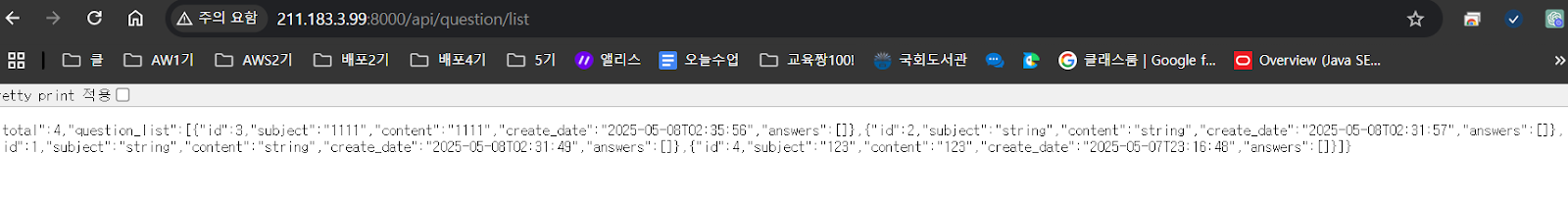 - 아예 여기로 접속해서 리스트가 뜨는지 확인 가능